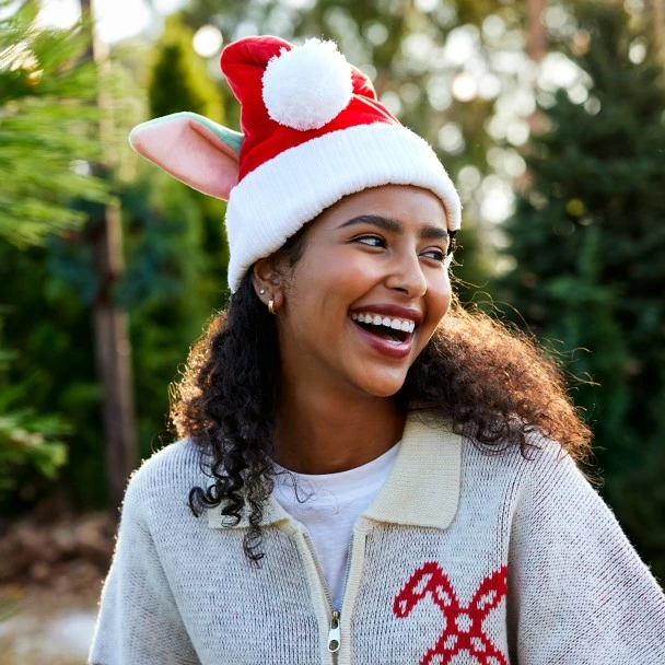 You’ll be ready for the winter weather with this cute Santa hat featuring 3D Grogu ears and woven Star Wars logo tag with a candy cane striped pattern. It’s the perfect topper for out-of-this-world holiday spirit.
