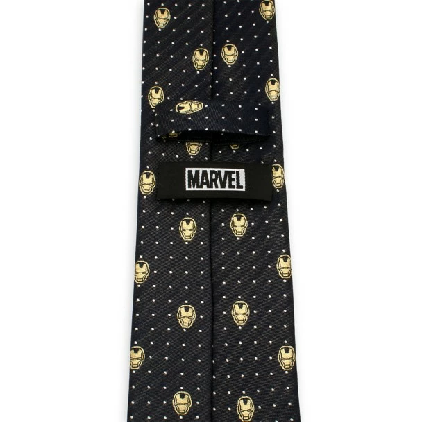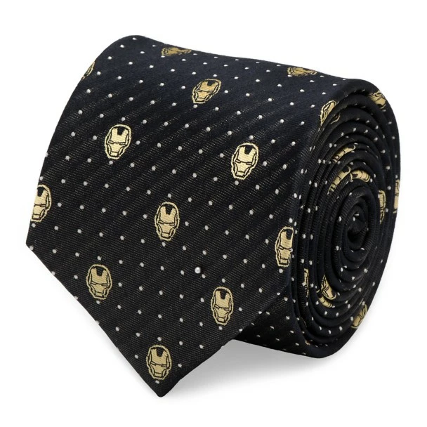 You’ll show off your strong sense of style with this silk Iron Man tie. The Avenger’s distinctive helmet is embroidered in the allover design of this tie, which features polka dots on the subtle gray and black striped weave.