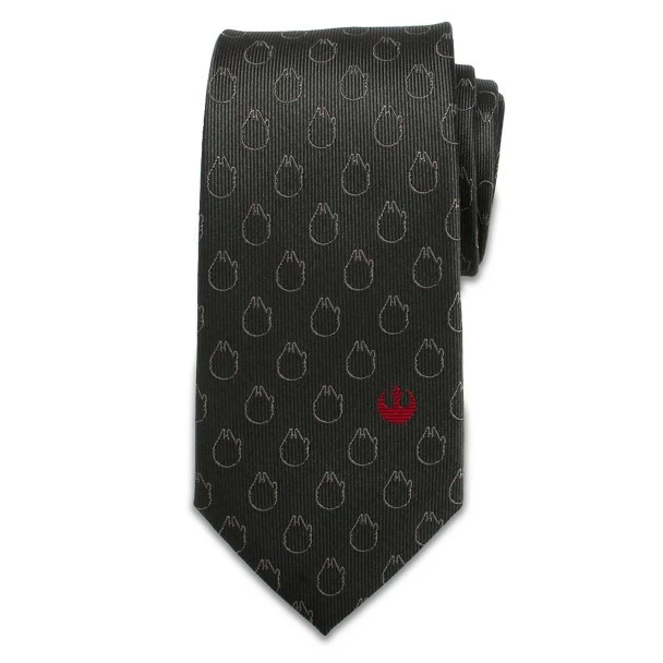 Feel the Force of fine fashion at your next formal event with this silk Star Wars necktie featuring a Millennium Falcon silhouette pattern and Rebel Alliance Starbird accent.