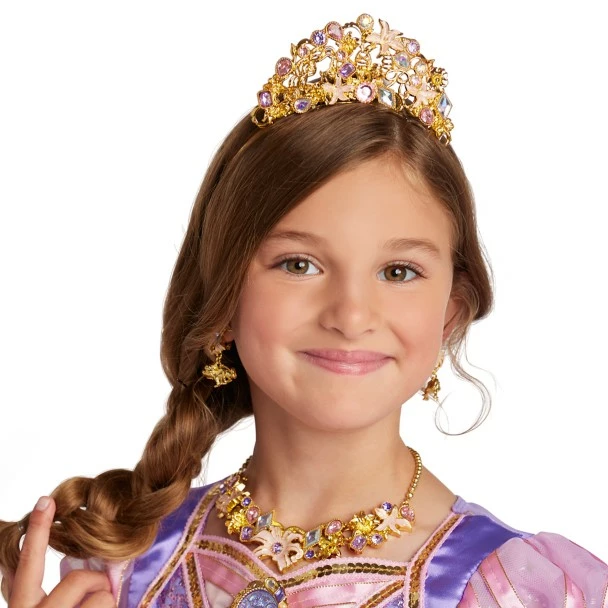 Attend a royal coronation for your princess-to-be by topping the ensemble with this bejeweled tiara. A luminaria cameo, faceted gems, and character filigree highlight the crowning glory of any Rapunzel costume.