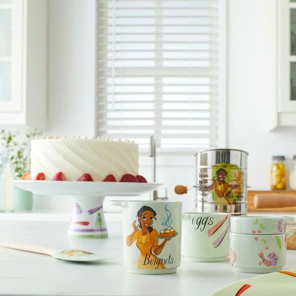 Let princess Tiana help you in the kitchen with this spatula inspired by the the EPCOT International Food & Wine Festival 2022. It features a wooden handle and a silicone top with Tiana artwork on one side and measurements on the other.