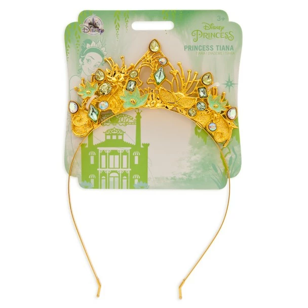 Attend a royal coronation for your Carnival Queen with this bejeweled tiara. Lotus blossoms, lily pads, and faceted gems offer fanciful filigree for this crowning glory of any Tiana costume.